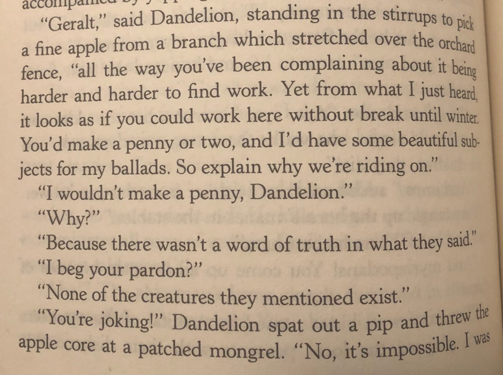 If you’ve never been to book club before, start here! This time we’ve read chapter three, four, and five of The Last Wish. These chapters showed some more of the frame story (“The Voice of Reason”) as well as the short stories “The Lesser Evil,” “A Question of Price,” and “The Edge of the World.” There’s a lot to discuss with these stories so I’ll hop right in. Like last time, I’ll put the questions here first so they’re all together:
