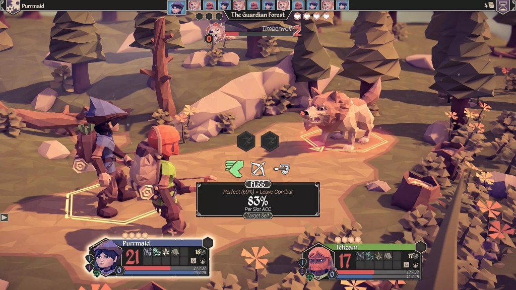 Whose favorite part of an RPG is the combat? I for one live for a combat sequence that make my hands sweaty. The combat system in For the King is a perfect example of this. Combat is turn-based, much like Dungeons and Dragons, with characters taking alternating swipes at each other based on their speed stat. Fights aren’t always fair. Characters can only support each other in battle if they’re within a handful of hexes from the fight; so a surprise ambush can be deadly. Much like Dungeons and Dragons all movement and combat actions in the game are resolved by rolling a dice against your statistics, in this case it’s a 100 sided die. A players statistics usually range from 70-90 in what each player is good at, but are as low as 40 in what they’re bad at. A way to guarantee a better role is to use a character’s Focus. Focus is a limited resource replenished by resting or items, so be careful and use it when it really matters!